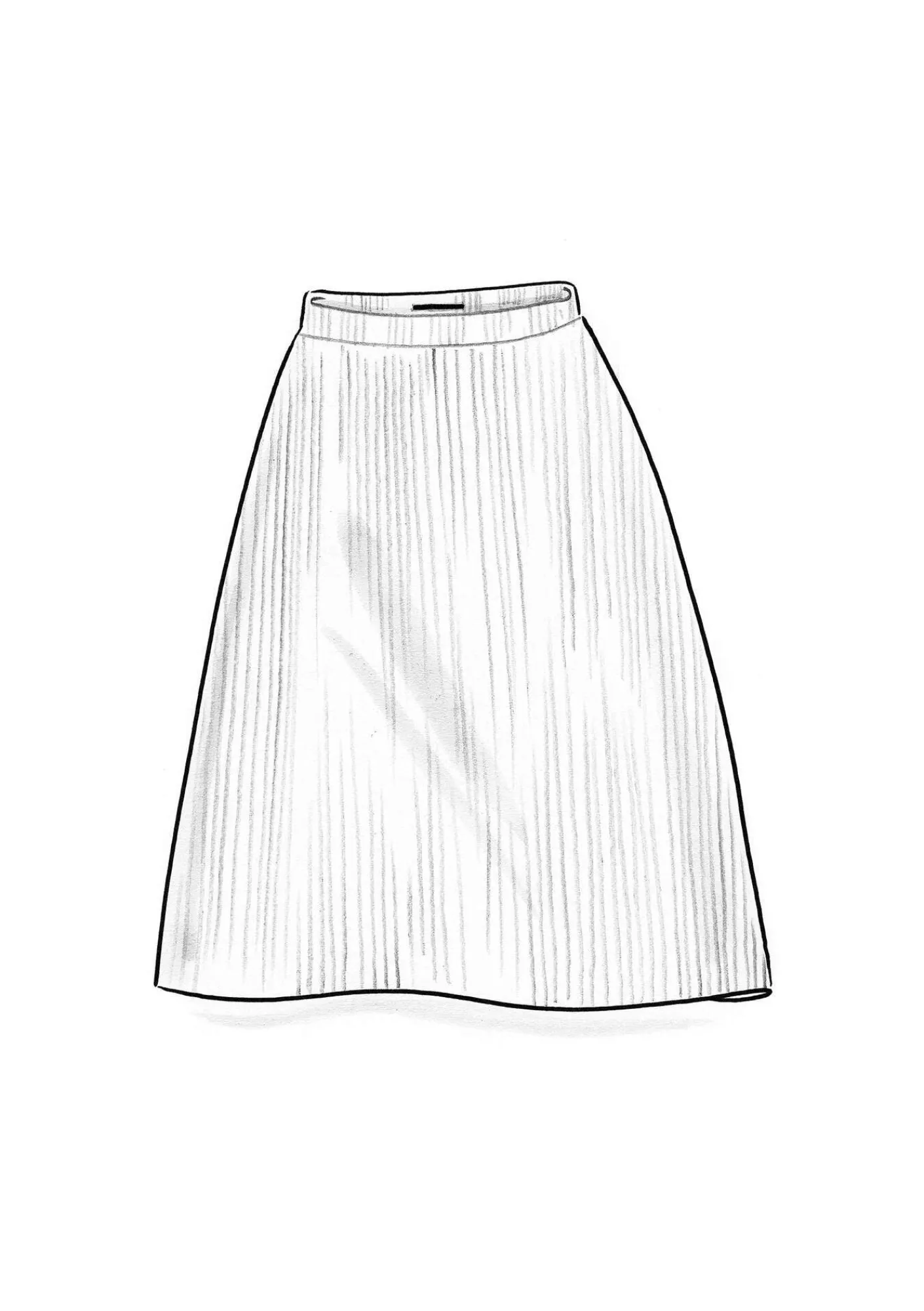 Patentstickad kjol i en lite längre, lätt utställd, modell. Ribbstickad midja med klädd resår.