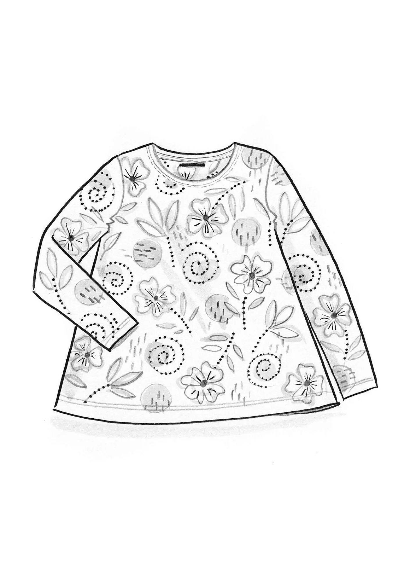Mönstrad top där digitaltrycket fångar akvarellens flödande känsla. Modell med rund halsringning och hellånga ärmar.