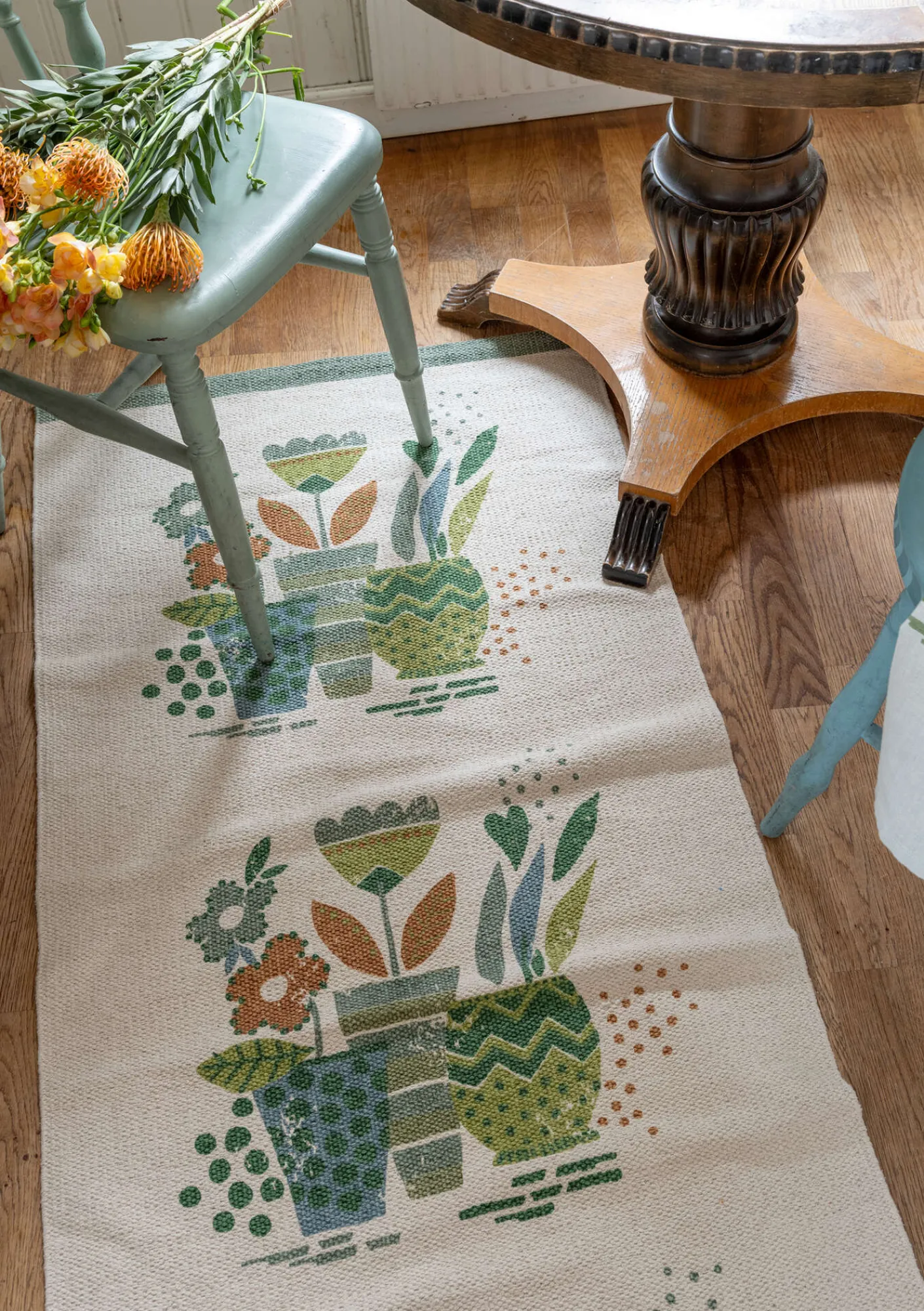 Tryckt gångmatta ”Flower pots” i ekologisk bomull-Gudrun Sjödén New