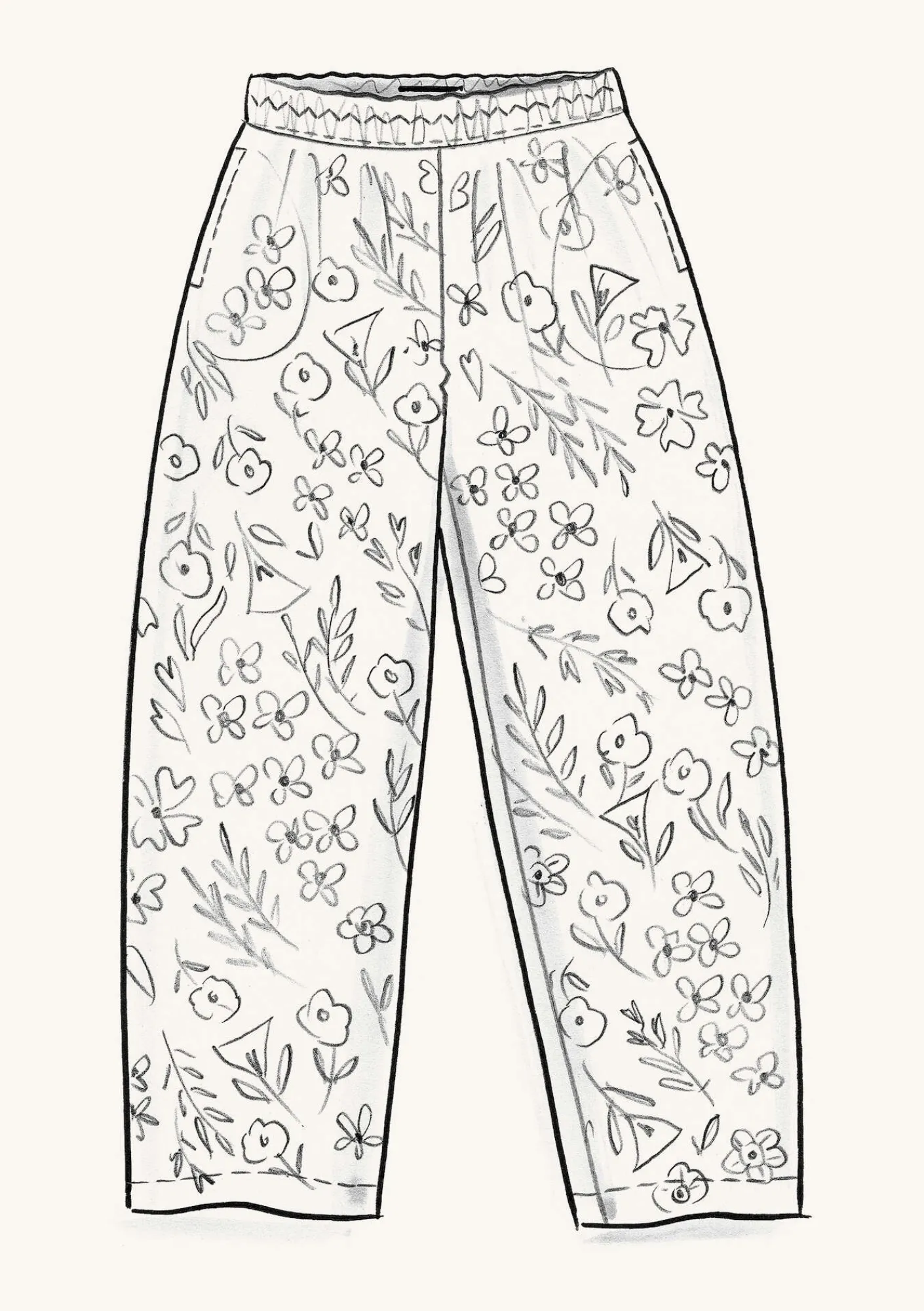 Modell i ankellängd med en insydd resår i midjan och sidfickor.
