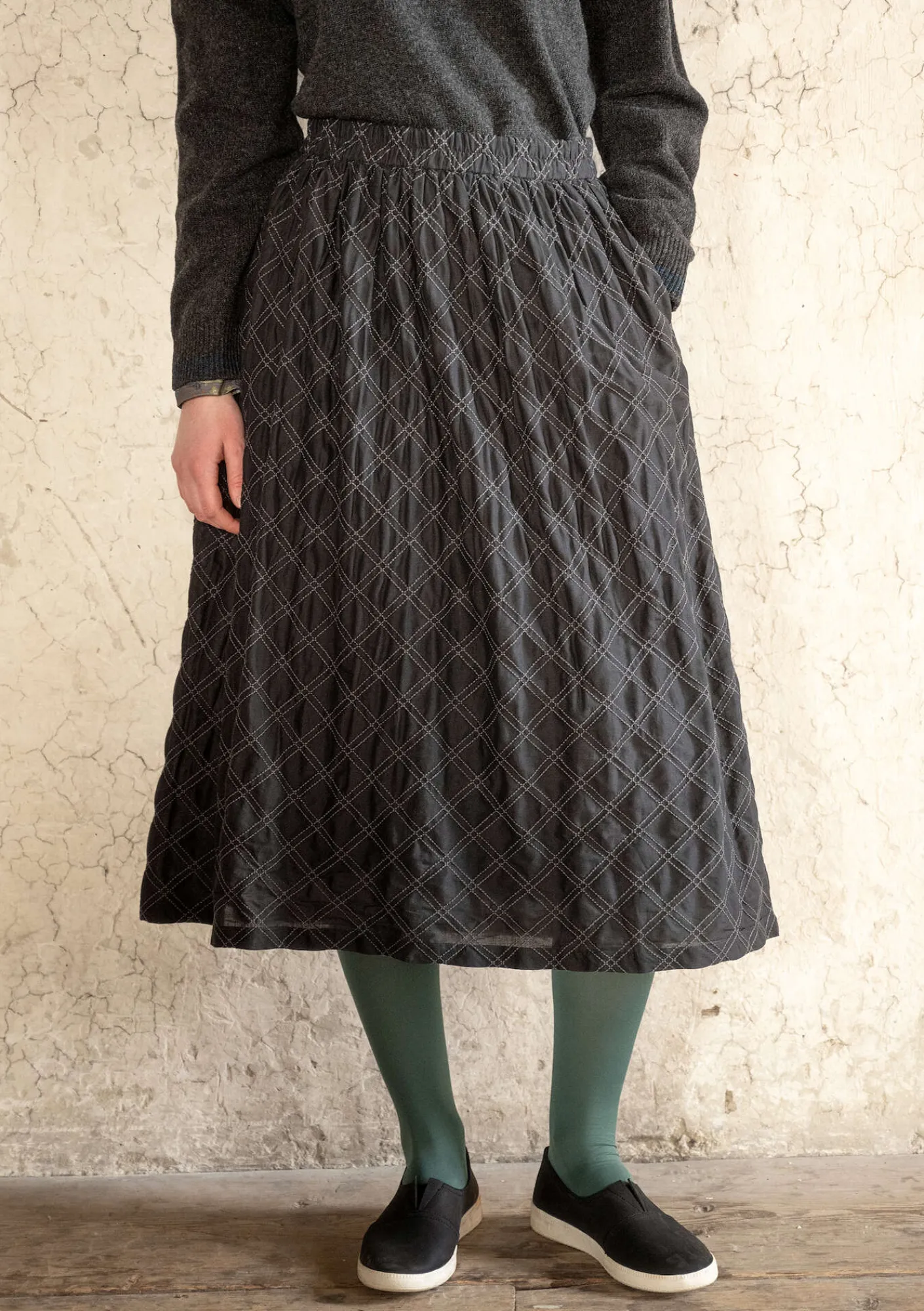 Helbroderad kjol med ett vackert rutmönster ton-i-ton. Insydd resår i midjan och praktiska sidfickor.
