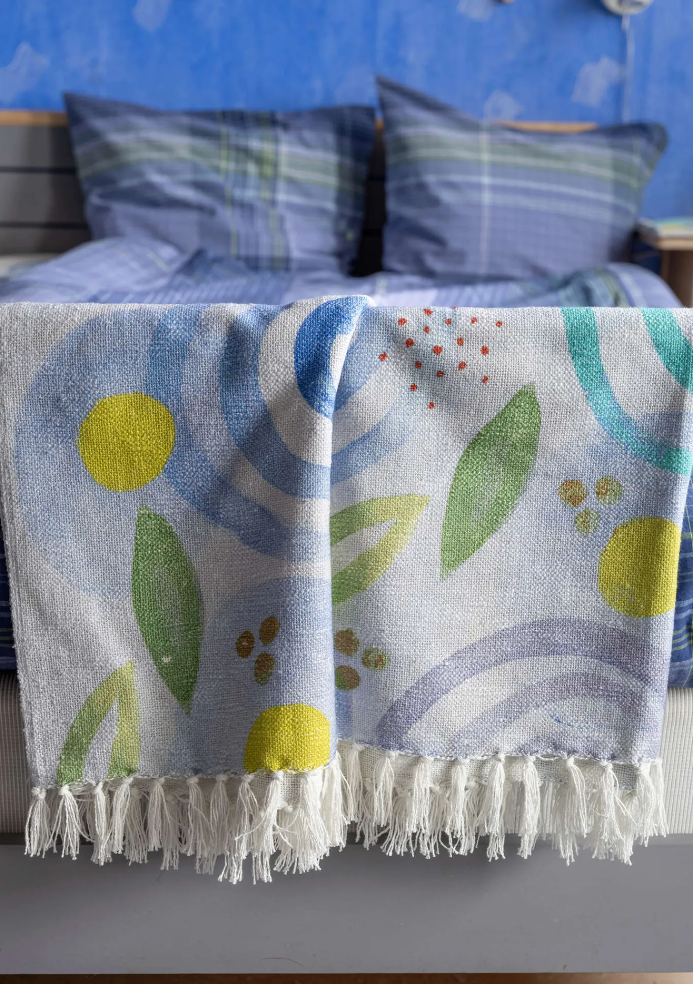 Skön pläd i en handvävd kvalitet i ekologisk bomull. Dekorerad med lekfullt digitaltryckt mönster samt med fransar på kortsidorna.