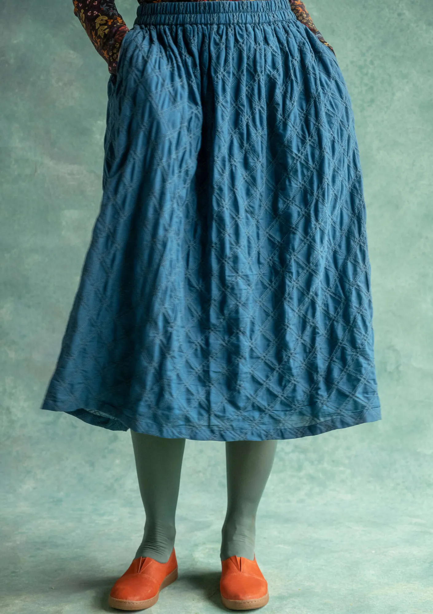 Helbroderad kjol med ett vackert rutmönster ton-i-ton. Insydd resår i midjan och praktiska sidfickor.