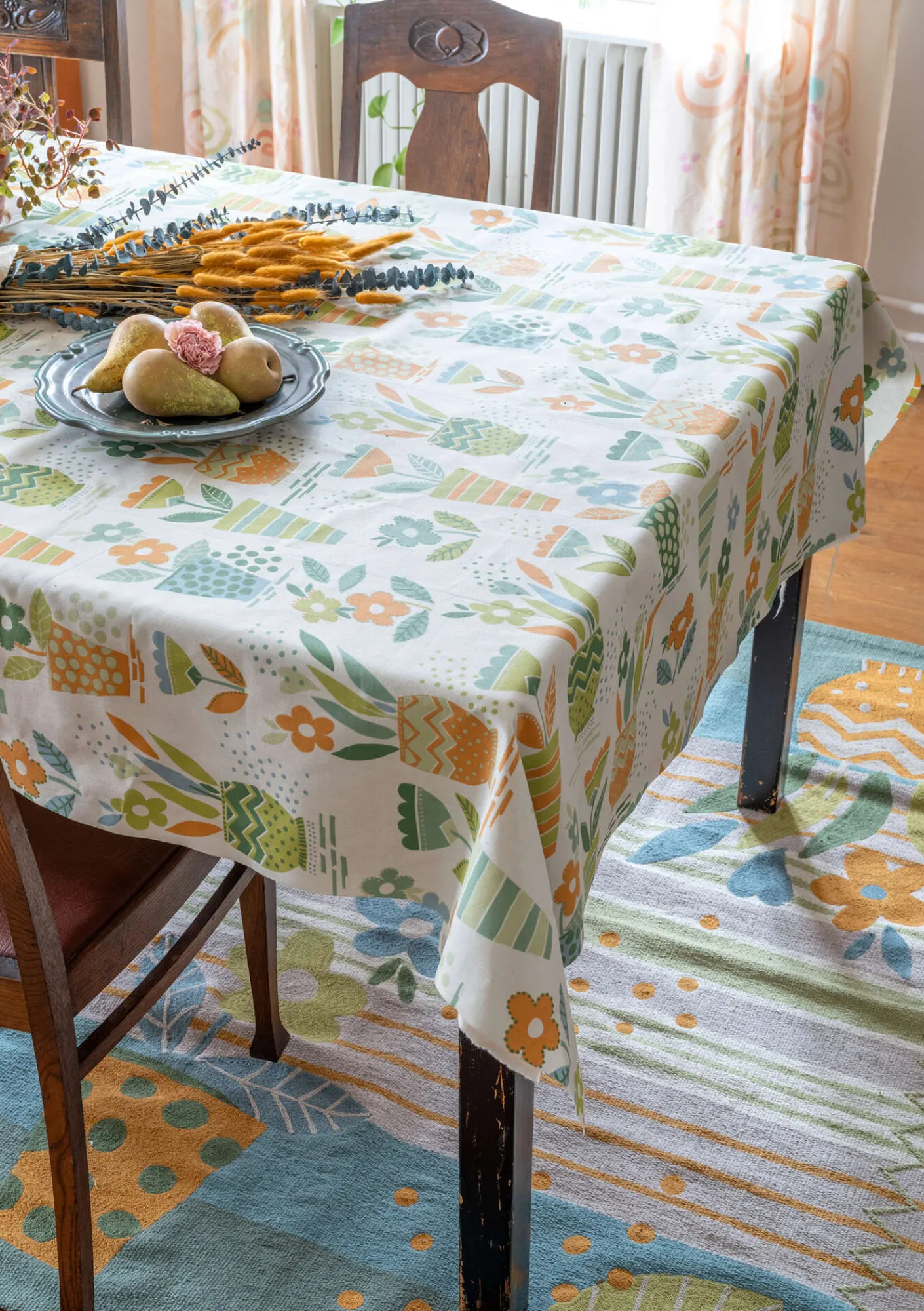 Både lekfull och praktisk är vår vaxduk med tryckt mönster. Rektangulär modell i ekologisk bomull med en avtorkningsbar yta.